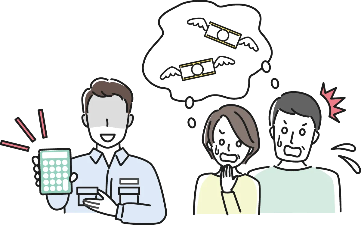 ケース2あとで高額請求される事前の説明もなく施工当日になって、追加費用が大量に発生し、最終的に高額な費用を請求されることがあります。