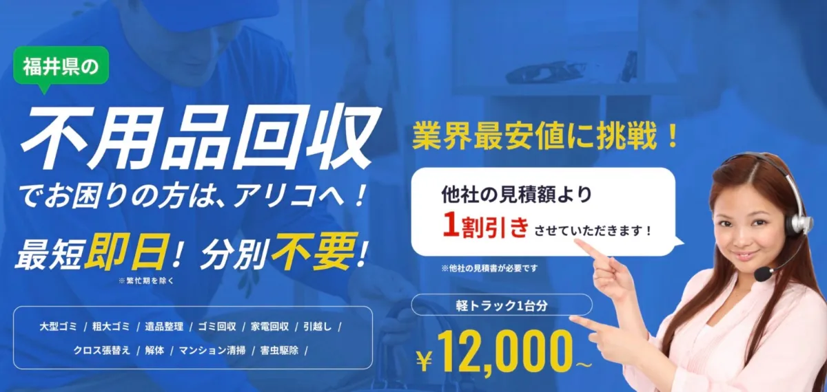 遺品整理・不用品回収ならアリコ福井・アリコ京都